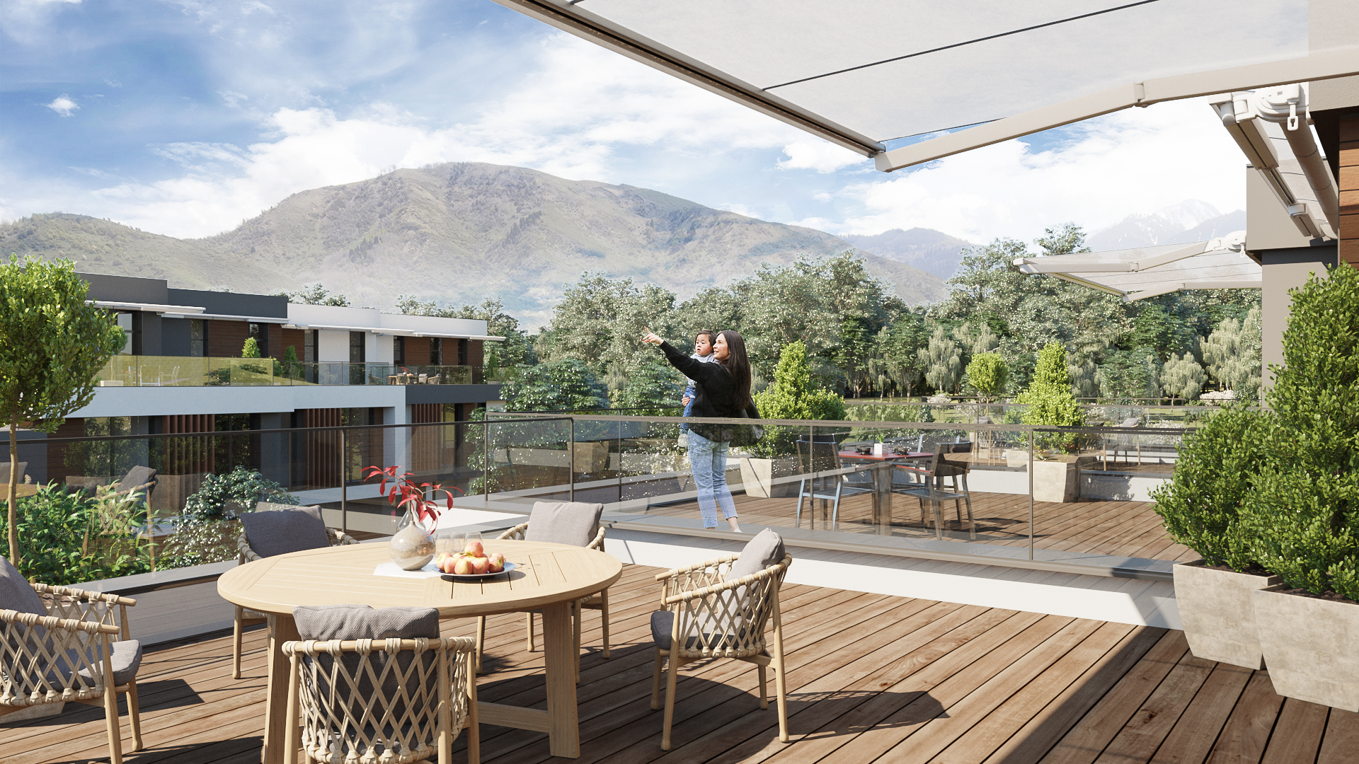 ЖК California – это 20 таунхаусов минимальной площадью 245 м2 и максимальной 310 м2. Все они трехэтажные, высота потолков – 3,3 метра. Жилье сдается в предчистовой (улучшенной черновой) отделке – покупатели могут оформить интерьер по своему вкусу. Кирпичные стены зданий отличаются высокой энергоэффективностью. Все здания оснащаются теплыми полями и системами «Умный дом». Фасады оформлены в современном стиле. При отделке их были использованы натуральные деревянные элементы. Интересны большие витражные окна в зданиях, из которых открывается шикарный панорамный вид на горы. Каждый таунхаус California в Алматы имеет собственное подворье и просторную террасу.